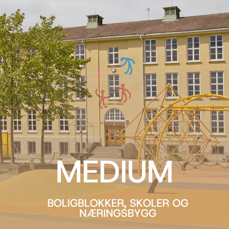 Mindre boligblokker, skoler, næringsbygg med flere kurser og soner